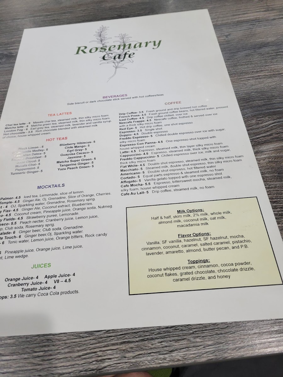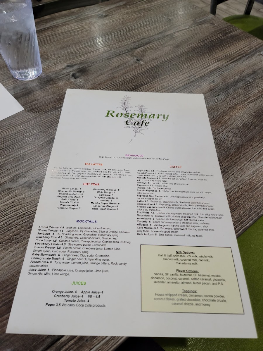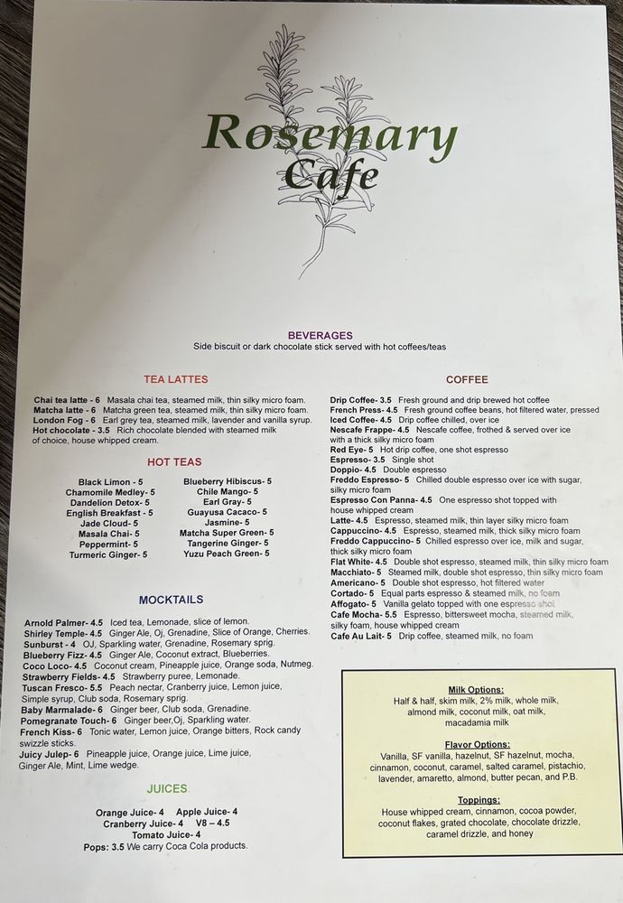 If you're looking for a cozy spot to enjoy a delicious meal in Joliet, look no further than the Rosemary Cafe Menu. This charming cafe offers a delightful variety of dishes, from comforting classics to fresh, flavorful options. Whether you're in the mood for a savory sandwich, a vibrant salad, or a heartwarming bowl of soup, Rosemary Cafe has something for everyone. The menu emphasizes quality ingredients, with a selection of wholesome dishes that will leave you feeling satisfied without compromising on taste. From breakfast to dinner, the cafe provides the perfect place to relax and indulge in delicious meals, paired with great service. So whether you're grabbing a quick bite or sitting down for a leisurely meal, Rosemary Cafe’s menu has plenty of choices to make every visit memorable.